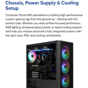 Computer Doctor BG specializes in building high-performance custom gaming rigs from the ground up — starting with the perfect case. Whether you want airflow-focused performance, RGB lighting, tempered glass panels, or liquid cooling support, we’ll help you choose and build a fully integrated system with the right case, PSU, and cooling combination.